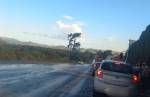 Homem morre e mulher fica ferida após caminhão capotar na BR-040, em Nova Lima