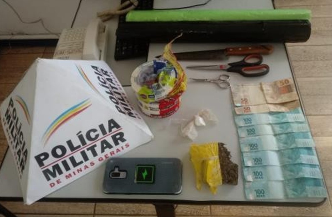 Na quarta-feira, dia 21 de agosto, a Polícia Militar de Moeda cumpriu um mandado de busca e apreensão na casa de V.F., de 35 anos. Ao perceber a presença dos policiais, o suspeito tentou fugir do local, mas foi contido. Durante as buscas, foram localizados um tablete de maconha, um invólucro com cocaína, R$ 700, um celular e dois rolos plásticos para embalagem de drogas. Todos os materiais foram apreendidos (foto). V.F. recebeu voz de prisão em flagrante.