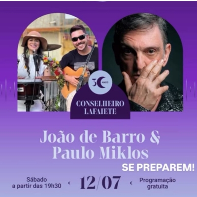A cidade de Conselheiro Lafaiete será palco de mais uma edição do Minas ao Luar, no próximo dia 12 de julho, a partir das 19h30, na Praça do Cristo. O evento gratuito contará com a apresentação principal de Paulo Miklos, cantor e compositor que integrou a formação original da banda Titãs, ícone do rock brasileiro nos anos 1980.