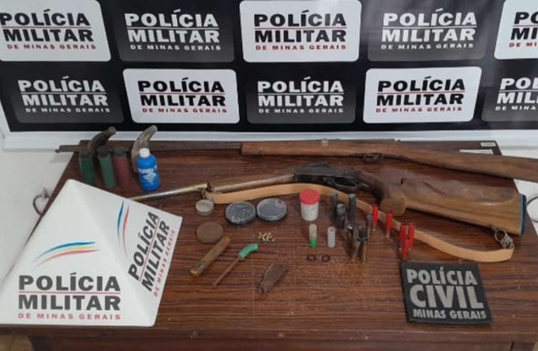 Na residência alvo foram apreendidas duas espingardas escopetas, frascos com pólvora e chumbo, 17 espoletas, cinco cartuchos vazios e oito deflagrados. O morador, de 49 anos, foi preso e conduzido à Delegacia de Polícia Civil, junto com o material recolhido.