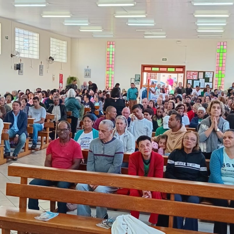 O evento incluiu uma pequena procissão com a imagem de São Vicente de Paulo e a celebração da Santa Missa
