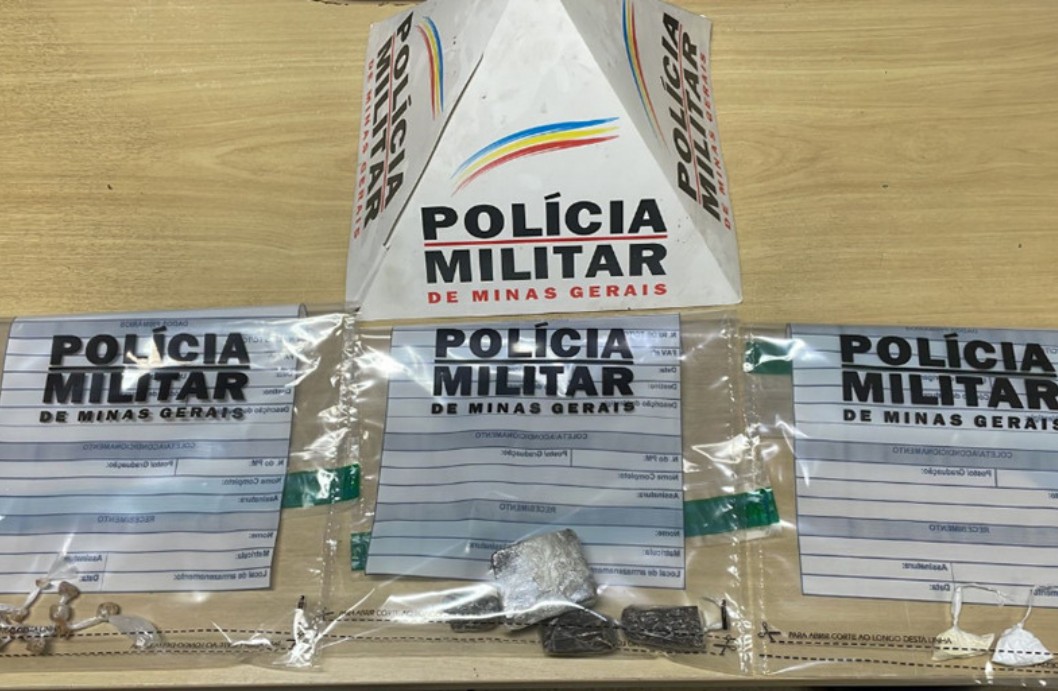 Durante a revista, os policiais encontraram uma sacola com quatro tabletes de maconha, duas porções de cocaína e 14 pedras de crack, além de roupas e um aparelho celular. Ele foi preso em flagrante por tráfico de drogas e encaminhado à Delegacia de Polícia Civil de Congonhas, junto com todo o material apreendido.