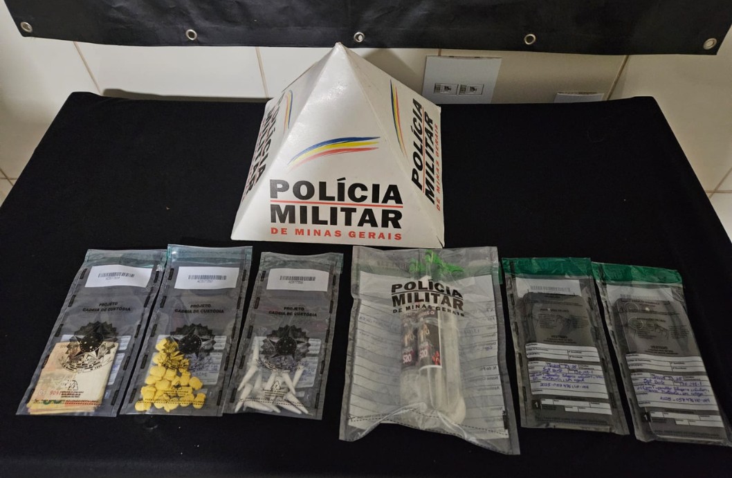 Após o desembarque dos ocupantes, foram localizados 15 pinos de cocaína, parte no solo próximo à passageira e parte no interior do veículo. No porta-luvas, os militares encontraram ainda três frascos de lança-perfume. Com o condutor, de 30 anos, foi apreendida a quantia de R$ 200 em dinheiro. Durante a ação, outra ocupante do veículo, de 21 anos, entregou espontaneamente 26 comprimidos de ecstasy. Questionados, o motorista assumiu a propriedade da cocaína e do lança-perfume, relatando que tentou se desfazer do material ao notar a aproximação da viatura. A jovem de 21 anos alegou que os comprimidos seriam para uso pessoal, versão considerada incompatível com a quantidade apreendida.