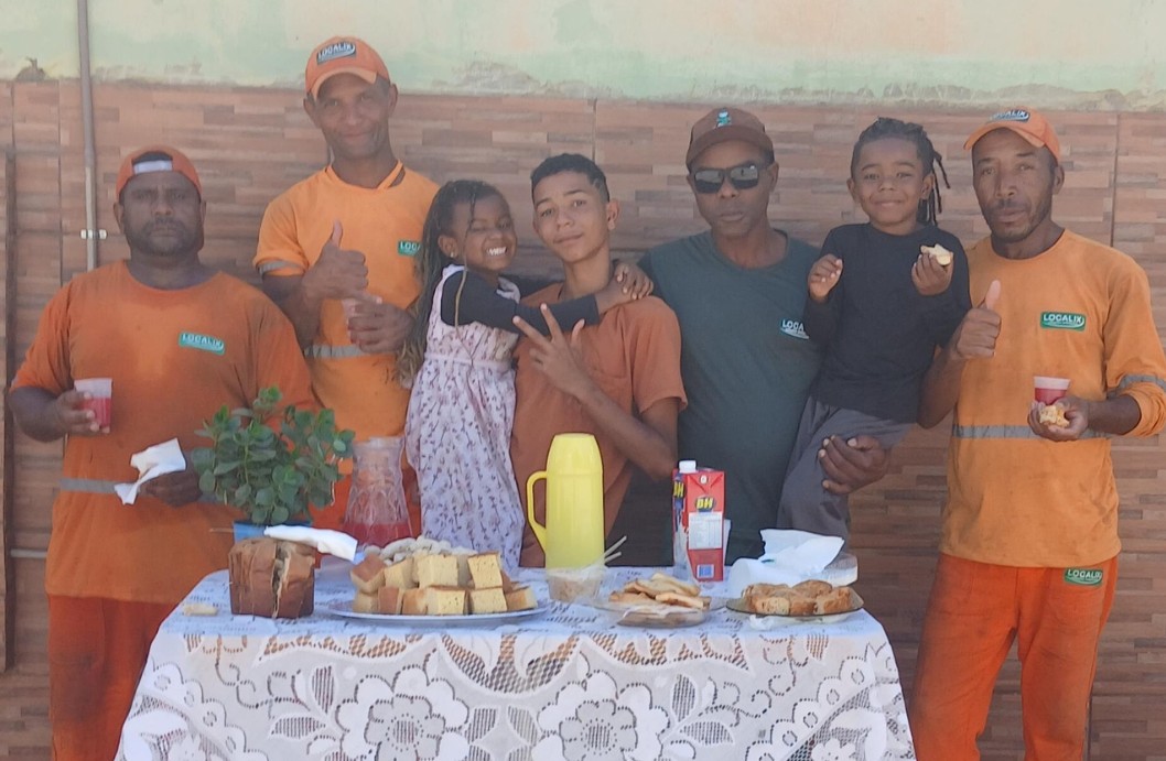 Ainda nas primeiras horas da manhã, antes mesmo do sol nascer, as crianças já aguardavam a chegada dos garis. Com a ajuda da mãe, Nayara Geórgia Augusto Batista da Silva, foram preparados café fresco, bolo, pães, sanduíches e outros alimentos, organizados com cuidado e carinho para receber os trabalhadores.