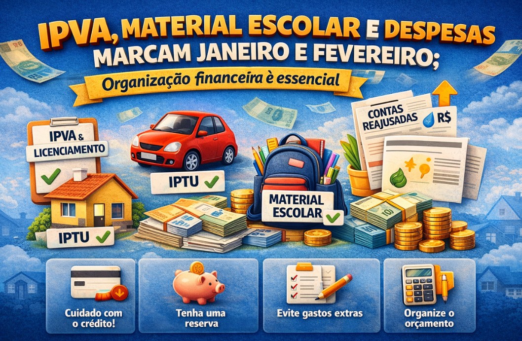 O início do ano é tradicionalmente um dos períodos mais desafiadores para o orçamento das famílias brasileiras. Em poucos meses, concentram-se impostos obrigatórios, despesas escolares, contas reajustadas e gastos recorrentes, exigindo planejamento financeiro para evitar o endividamento. Em 2026, despesas como IPVA, IPTU, material escolar, matrícula, impostos e tarifas atualizadas voltam a pressionar o bolso do consumidor.Especialistas alertam que a falta de organização logo em janeiro pode comprometer o equilíbrio financeiro de todo o ano, especialmente para quem já começa o período com gastos acumulados das festas de fim de ano.