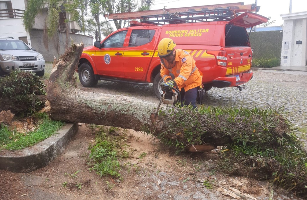 Com a chegada do período chuvoso, o Corpo de Bombeiros Militar de Minas Gerais tem registrado aumento nas ocorrências envolvendo árvores com risco iminente de queda ou já caídas, situações que oferecem perigo à população e impactam a mobilidade urbana.