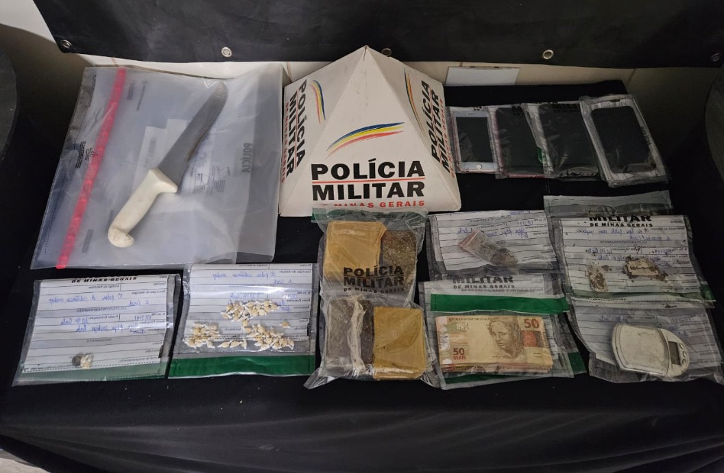 Após a abordagem de um dos envolvidos em via pública, foram encontradas pedras de crack, o que confirmou a venda de entorpecentes. Em seguida, a equipe policial entrou na residência do suspeito apontado como fornecedor, que confessou a prática criminosa. Durante as buscas no imóvel, a Polícia Militar apreendeu 50 pedras de crack, quatro barras de maconha, além de buchas da mesma substância, balança de precisão, instrumentos de corte com resquícios de drogas e dinheiro em espécie.