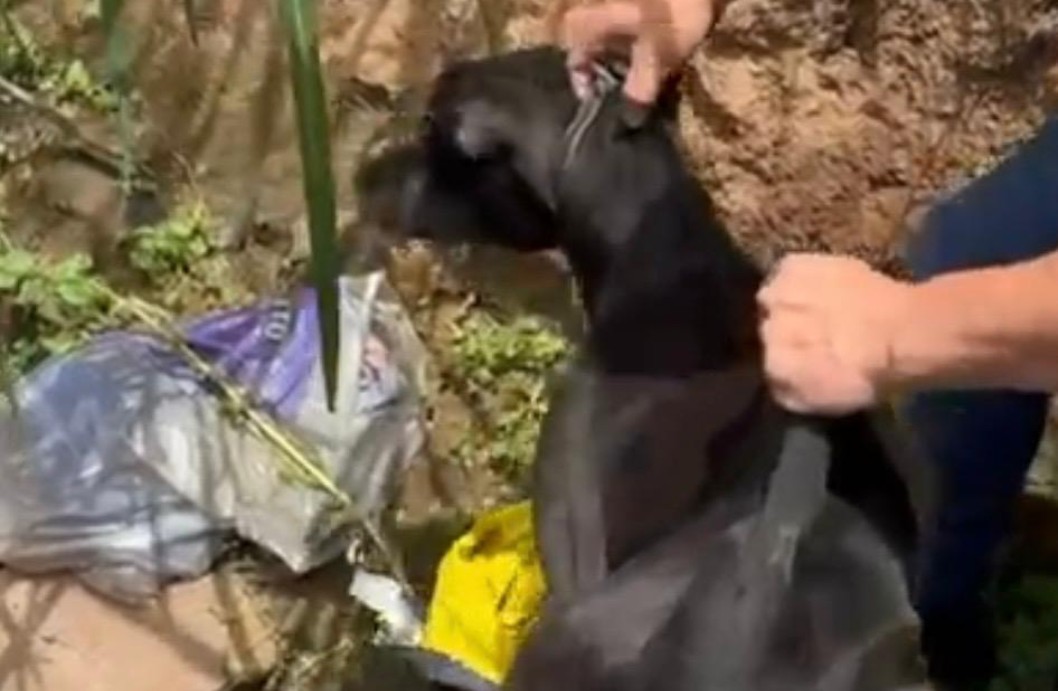 Cão foi encontrado agonizando dentro de sacos de lixo no bairro Linhares