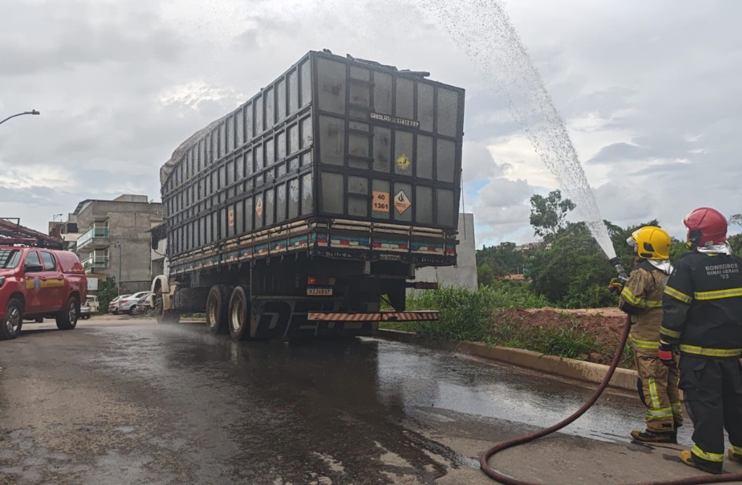 Ao chegar ao local, a guarnição constatou que o veículo não apresentava chamas nem fumaça, já que o princípio de incêndio havia sido controlado anteriormente por populares, com o uso de mangueiras e uma bomba d’água. Apesar disso, devido às características do material transportado — cerca de seis toneladas de carvão vegetal, que apresenta alto risco de reignição —, os militares adotaram medidas preventivas para garantir a segurança da área.
