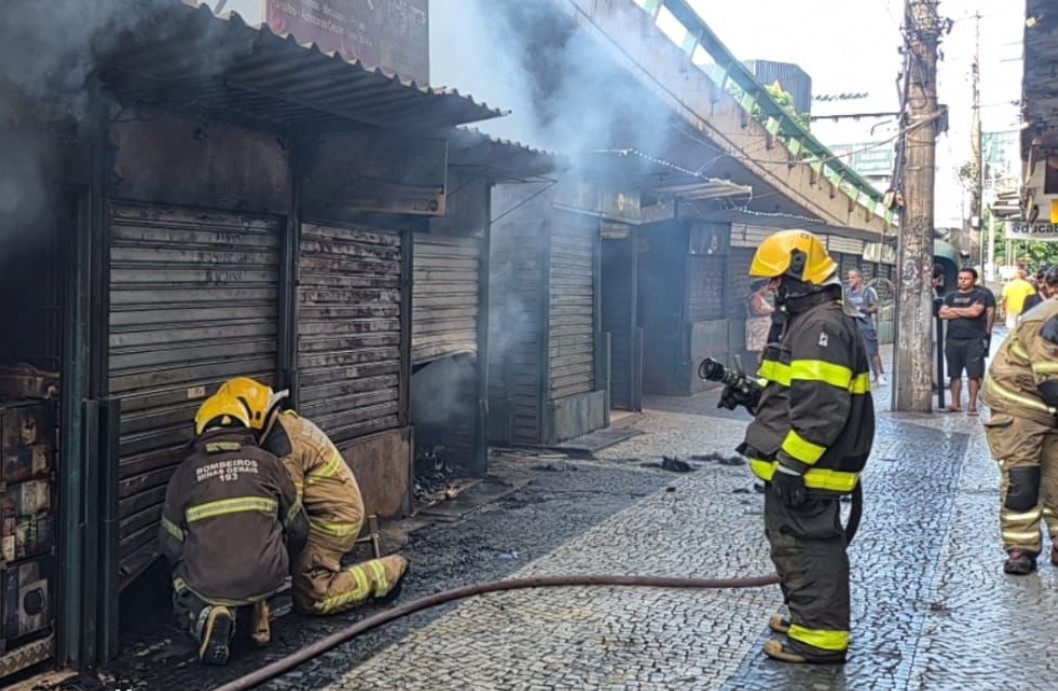 Oito barracas de camelôs são atingidas por incêndio no Centro de Lafaiete