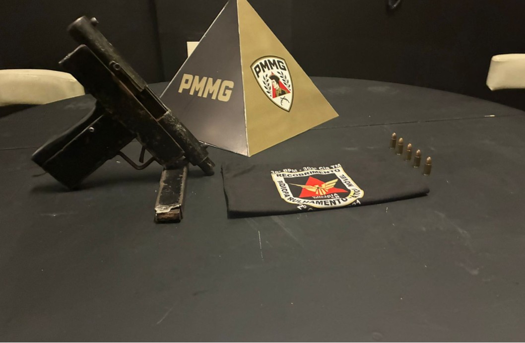 Foram apreendidos diversos materiais ilícitos, incluindo uma submetralhadora artesanal calibre 9 mm municiada