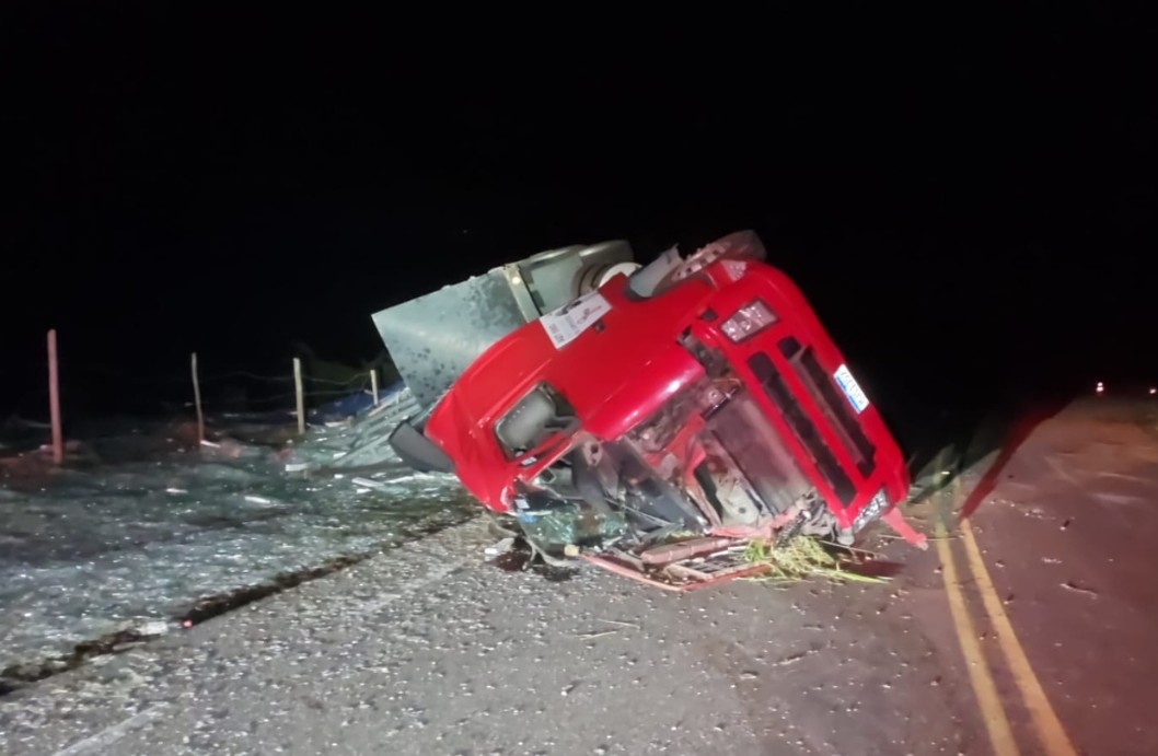 Com o impacto, a carga de peças de vidro foi arremessada para fora do veículo, ficando espalhada pela pista e também em uma área às margens da rodovia, o que aumentou o risco para quem passava pelo local. A área foi devidamente sinalizada para evitar novos acidentes. A perícia técnica foi acionada, mas dispensou comparecimento. Como não havia responsável pela carga no momento, a remoção do veículo não foi realizada de imediato por falta de recursos disponíveis. A rodovia permaneceu com sinalização até a normalização da situação.