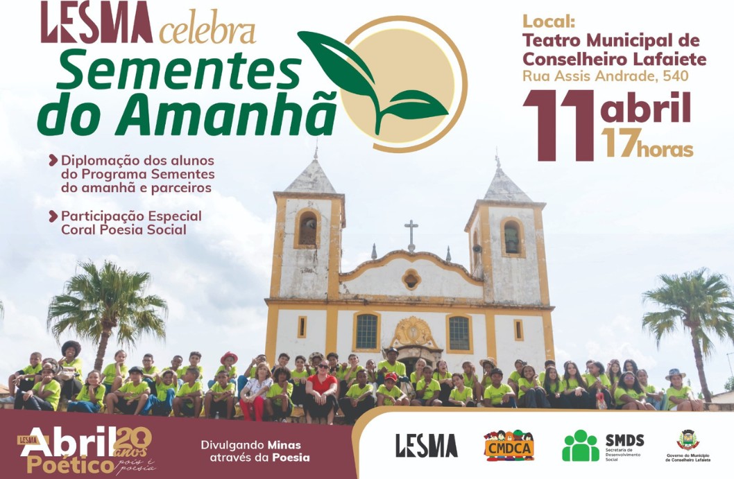A Liga Ecológica Santa Matilde (Lesma) promove neste sábado, dia 11, a cerimônia de certificação dos participantes do Programa Sementes do Amanhã (edição 2025/2026). O evento será realizado a partir das 17h, no Teatro Municipal Placidina de Queiróz, localizado na Rua Assis Andrade, 540, no Centro. A solenidade celebra o empenho de crianças, adolescentes, escolas, profissionais e entidades parceiras que contribuíram para a realização do projeto. Nesta segunda edição, o programa beneficiou cerca de 150 alunos por meio de oficinas de arte e convivência.