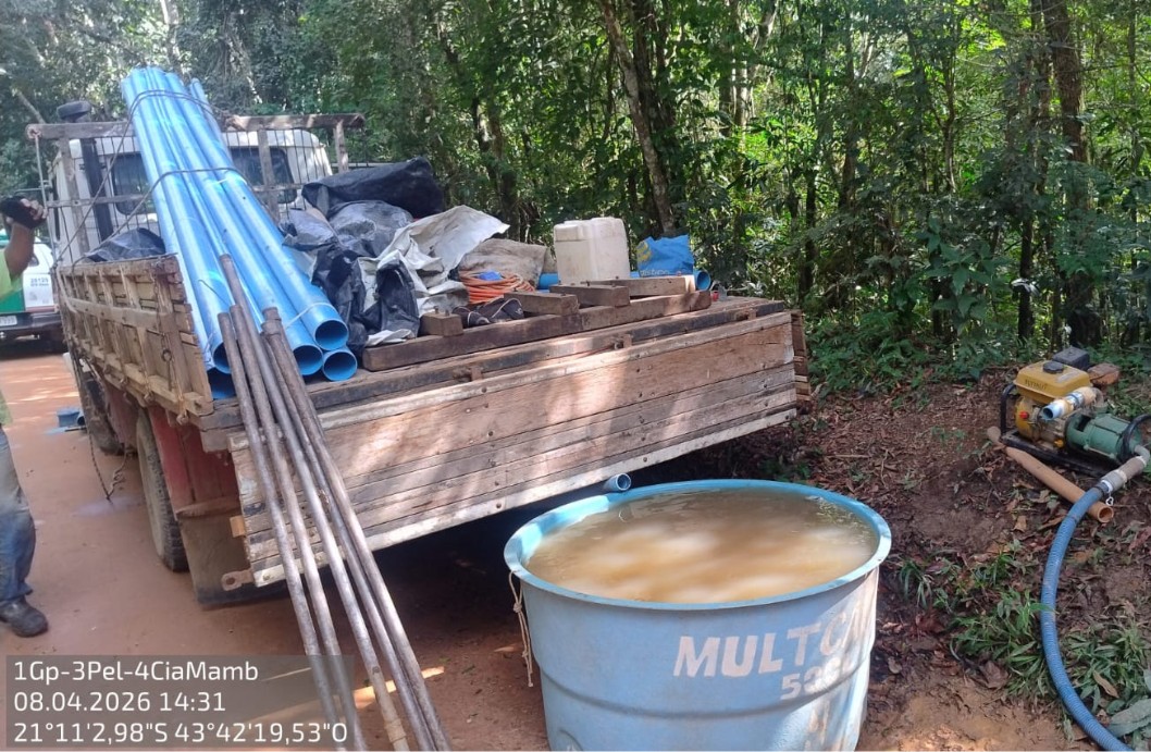 Três pessoas foram presas pela Polícia Militar de Meio Ambiente após serem flagradas realizando a perfuração de um poço tubular em uma área de preservação permanente em Barbacena. A ocorrência foi registrada no dia 8 de abril, após denúncia anônima recebida por meio do Disque Denúncia Unificado (DDU).