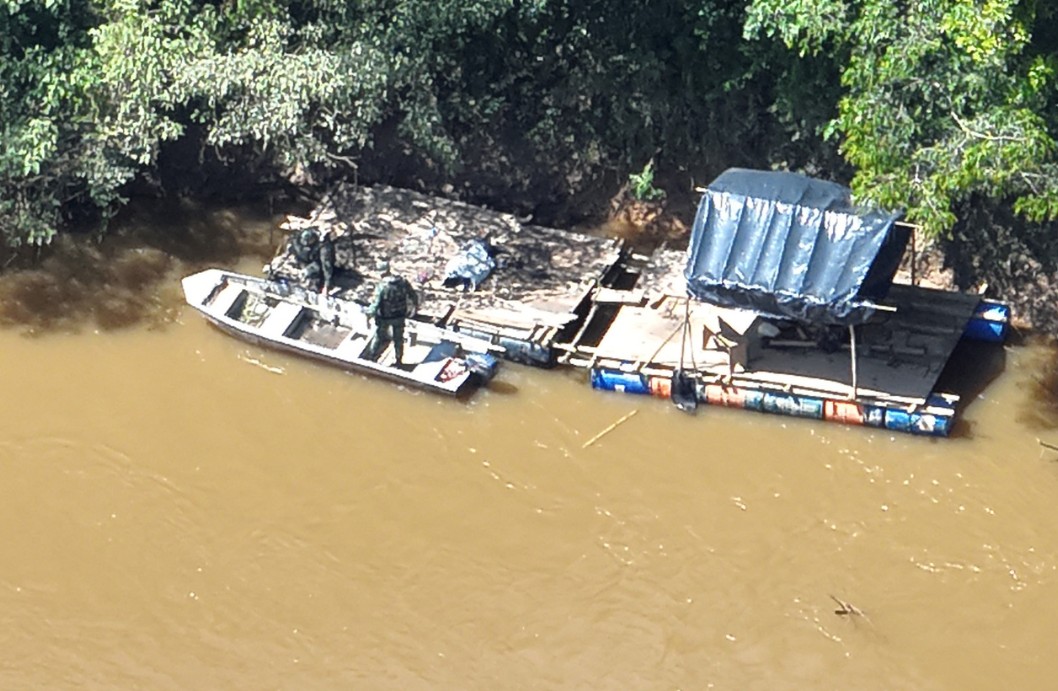 Ação identificou uso de draga clandestina; dois suspeitos fugiram e balsas serão inutilizadas