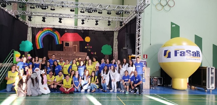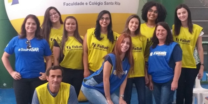 A Faculdade Santa Rita – FASAR – participou do “Sábado Em Família”, que ocorreu no Clube Recreativo Dom Pedro II no dia 1º de junho, com realização de ações recreativas e de promoção da saúde para todas as idades. Alunos e professores dos cursos de Biomedicina, Educação Física, Enfermagem, Farmácia, Nutrição e Pedagogia desenvolveram atividades como exame de tipagem sanguínea, brincadeiras infantis, orientações quanto à prevenção de Doenças Crônicas Não-Transmissíveis (DCNT) e ao uso correto de medicamentos, atividades de educação alimentar e nutricional para crianças, avaliação antropométrica, distribuição de mudas de plantas e de amostras de tempero, apresentação de teatro infantil e contação de histórias.