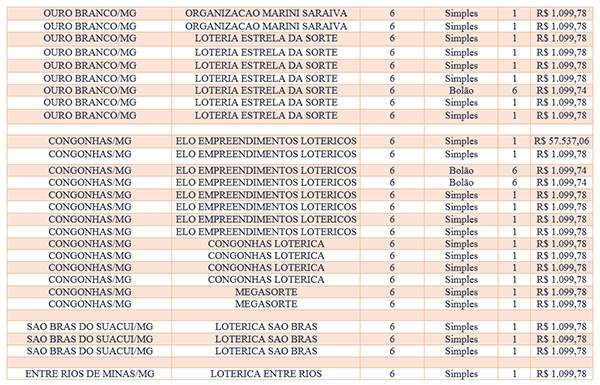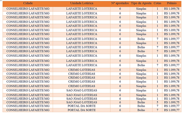 Os sortudos a lavarem os maiores prêmios fizeram sua aposta em Congonhas e Ouro Branco. Já em Lafaiete o que chama atenção é quantidade de apostas que acertam a quadra: são 44 ganhadores na cidade. Confira a lista das apostas da região: