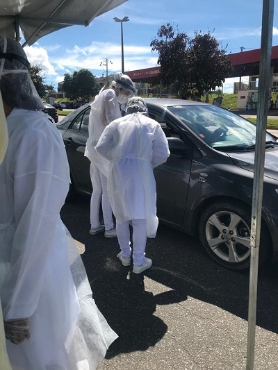 A temperatura corporal dos passageiros não pode ser igual ou superior a 37,5ºC. Caso aconteça, os profissionais que estão atuando na barreira encaminharão a pessoa para assistência médica. Estão participando profisisonais da Secretaria de Saúde, em parceria com estudantes do último período do curso de Enfermagem, na Fasar.