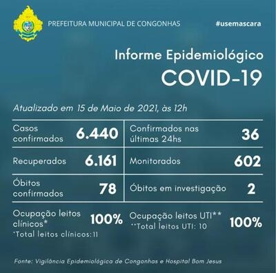 A ocupação de leitos de clínicos está em 100% e de UTI está em 100%. Até agora, 23 óbitos foram descartados para Covid-19 e dois estão em investigação para descobrir as causas.