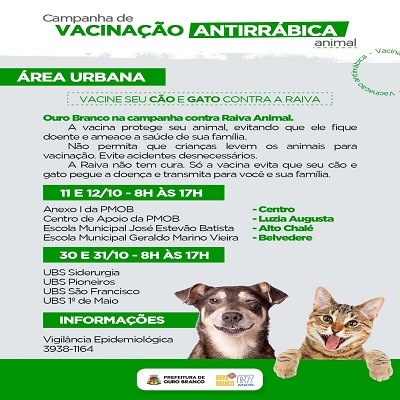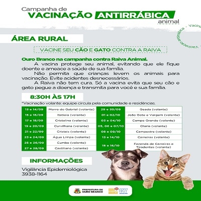A prefeitura de Ouro Branco retomou, no dia 11 de outubro, segunda-feira, as ações do Programa de Vacinação Antirrábica. O projeto deve darar até o final do mês.