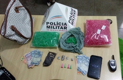 Após buscas no entorno do local com apoio de cão farejador, a polícia localizou um buraco na parede com quatro porções de substância semelhante à maconha e oito pedras de substância similar ao crack. Uma bolsa com pinos vazios também foi localizada.