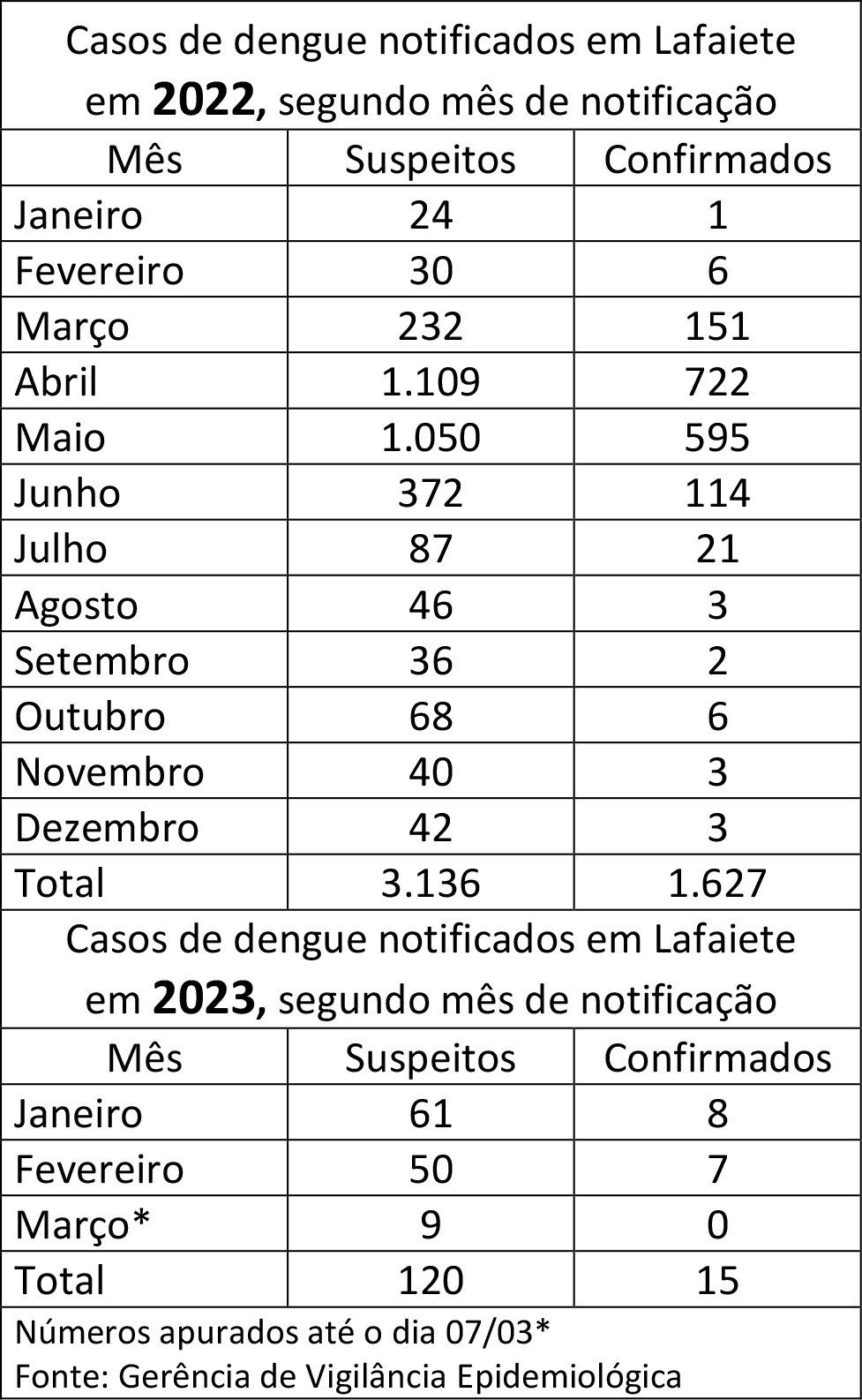 Depois de um 2022 tenso na área da saúde, com mortes por Covid-19 e mais de 3 mil casos suspeitos de dengue em Lafaiete, 2023 caminha para uma situação menos tensa nesse aspecto. De acordo com dados da gerência de Vigilância Epidemiológica, até o dia 7 de março, a cidade já havia notificado 120 casos da doença transmitida pelo mosquito Aedes aegypti. 15 deles foram confirmados (12,5%). O volume de registros é maior nos bairros JK, Arcádia, Morro da Mina, São João, Santa Matilde, Sion, Santa Maria, São Dimas e São Sebastião. Nos outras também foram registrados, porém, em menor quantidade. “A dengue é uma doença endêmica em nosso município. Por isso, é esperado que ocorram casos durante todo o ano e um aumento destes no período quente e chuvoso”, explica o gerente de Vigilância Epidemiológica, Especialista em Gestão em Saúde, em Epidemiologia e Profissionais de Saúde e em Saúde Pública, Diogo Dias Silva.