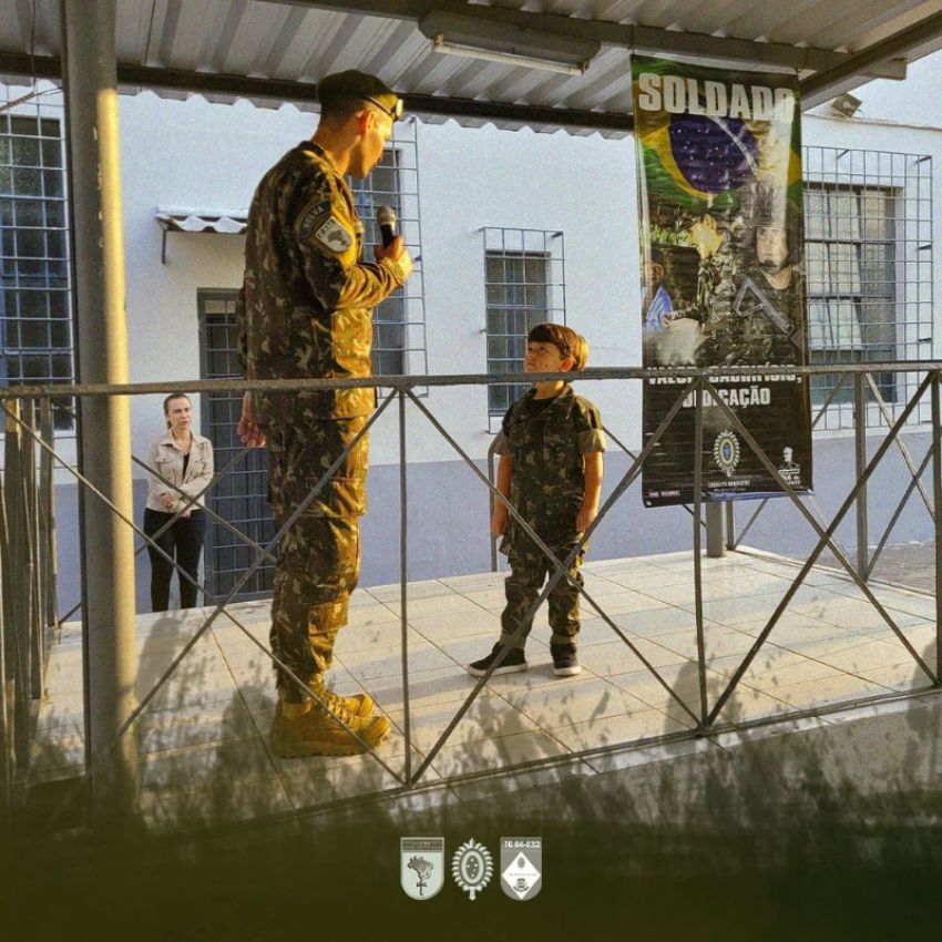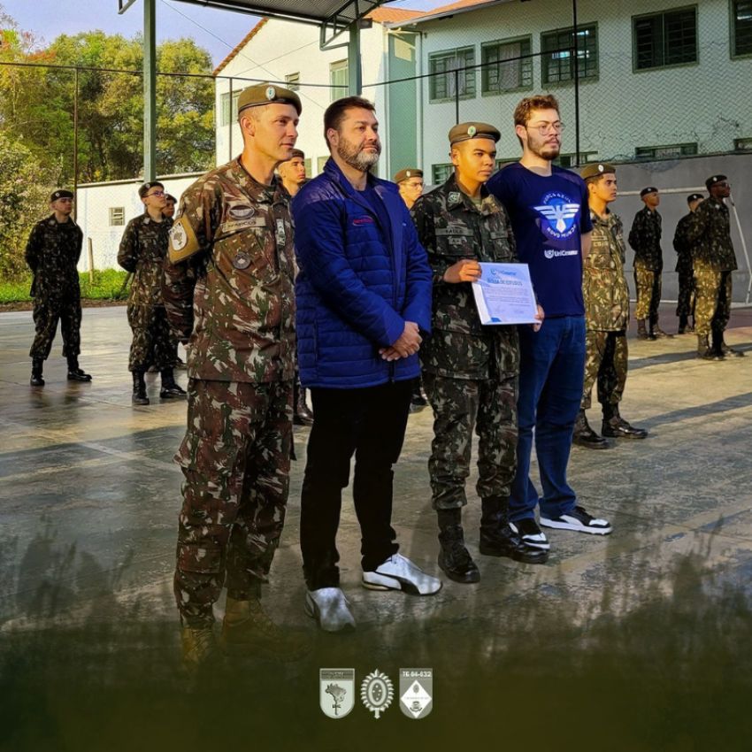 Durante a cerimônia, o gestor da Unicesumar, Emerson Batista dos Santos, veterano atirador do TG 05-010, em Paranavaí (PR), acompanhado de seu filho Davi Couto de Magalhães Santos, monitor destaque da turma de 2022, entregaram a bolsa de estudos, reafirmando os valores de cidadania, civismo e patriotismo, que todos tiveram nos Tiros de Guerra.