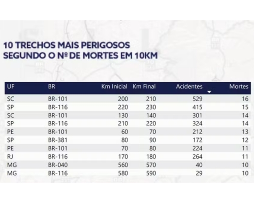 Ranking dos trechos com mais acidentes