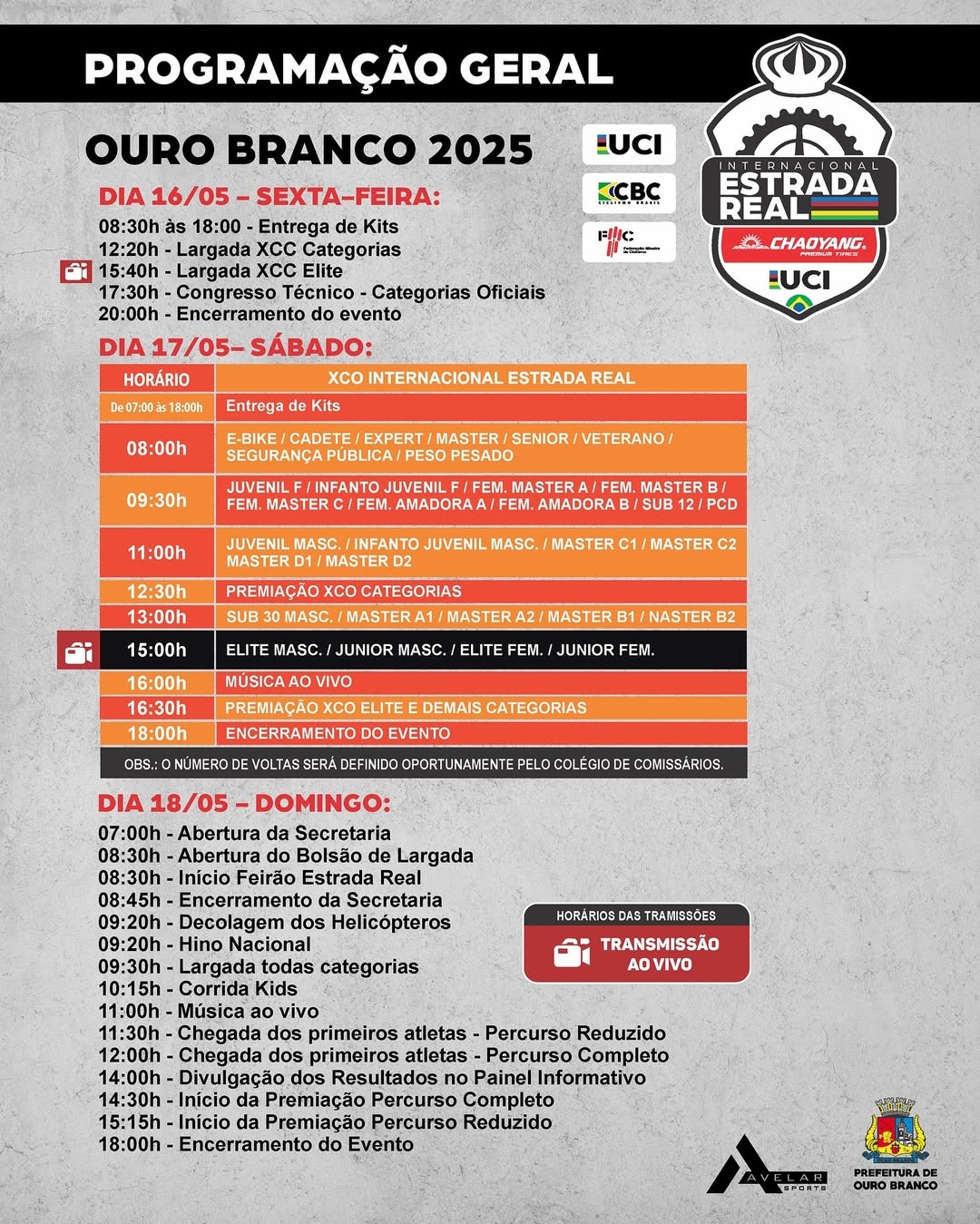 A realização do Internacional Chaoyang Estrada Real conta com o apoio da Prefeitura de Ouro Branco, que contribui com a estrutura e a programação cultural. As inscrições para as provas ainda estão abertas e podem ser feitas pelo site oficial do evento.