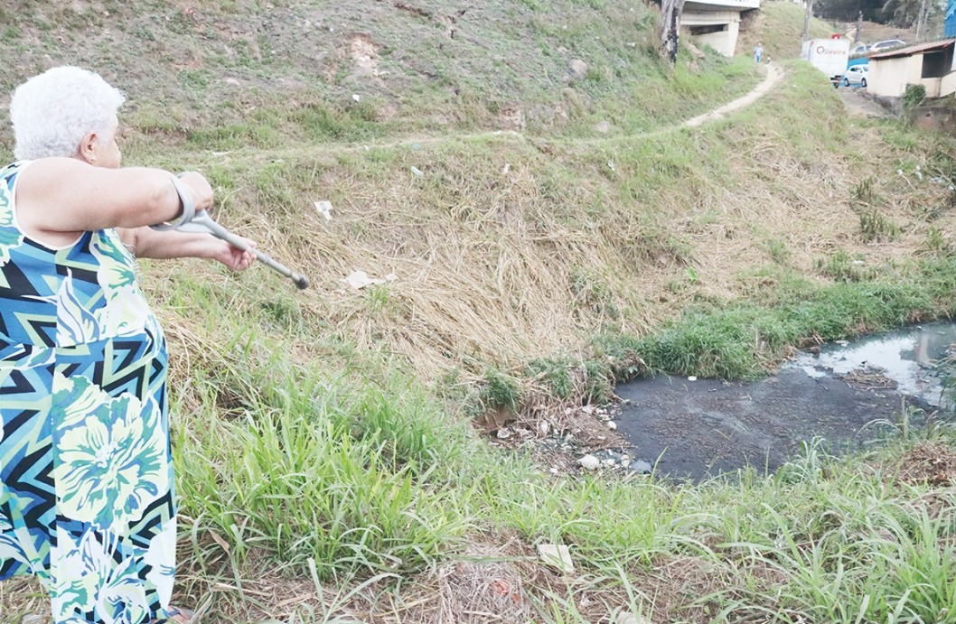 Moradores mostram a situação do córrego e pedem que algo seja feito logo