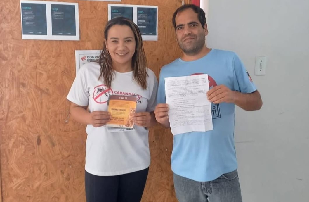 A Estratégia Saúde da Família (ESF) Santa Cecília, em Carandaí, promoveu uma ação de educação em saúde com foco na esporotricose. A atividade foi realizada na sala de espera da unidade e conduzida pelos Agentes de Combate às Endemias (ACE) Roberta e Elton.
