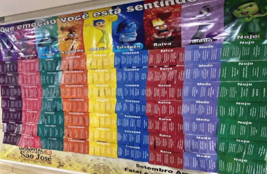 Uma ação da equipe de Psicologia do Hospital e Maternidade São José foi a criação do mural das emoções em alusão ao filme Divertidamente. A iniciativa busca o autoconhecimento de todos que passam pelo corredor do hospital. A equipe ainda organizou uma palestra interna com o psiquiatra Dr. Romulo Azevedo, que ocorrerá no dia 19 de setembro às 9h.