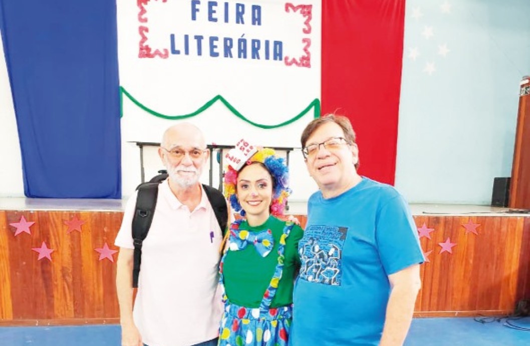 Cada turma apresentou estandes inspirados nas obras estudadas durante o bimestre, combinando pesquisa, criatividade e expressão literária. Representando a editora, os autores Léo Cunha e José Carlos Aragão participaram, interagindo com os alunos e ampliando a experiência de contato com a literatura contemporânea.
