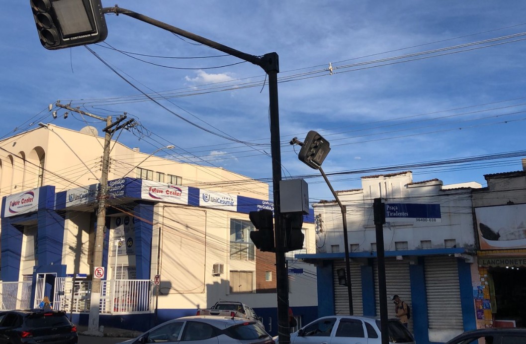 Um caminhão atingiu e danificou a estrutura do semáforo instalado na praça Tiradentes, próximo à rua Brasil e à praça Barão de Queluz, nos fundos da Igreja Nossa Senhora da Conceição, em Conselheiro Lafaiete. Com o impacto, os fios foram arrancados e o cruzamento ficou sem sinalização semafórica.