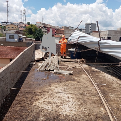Na manhã deste sábado, dia 29, o Corpo de Bombeiros de Conselheiro Lafaiete foi acionado para atender uma ocorrência de risco de desabamento no teto de um imóvel localizado na rua Carijós, nº 103, no bairro Rosário, sede da Liga de Desportos de Conselheiro Lafaiete (LDCL)., oferecendo risco iminente a moradores, pedestres e edificações vizinhas. Ao chegar ao local, a guarnição realizou uma avaliação detalhada da área e constatou o desabamento parcial do telhado. Utilizando técnicas de salvamento terrestre, os militares efetuaram amarrações estratégicas para estabilizar temporariamente a estrutura comprometida, evitando que o colapso avançasse.