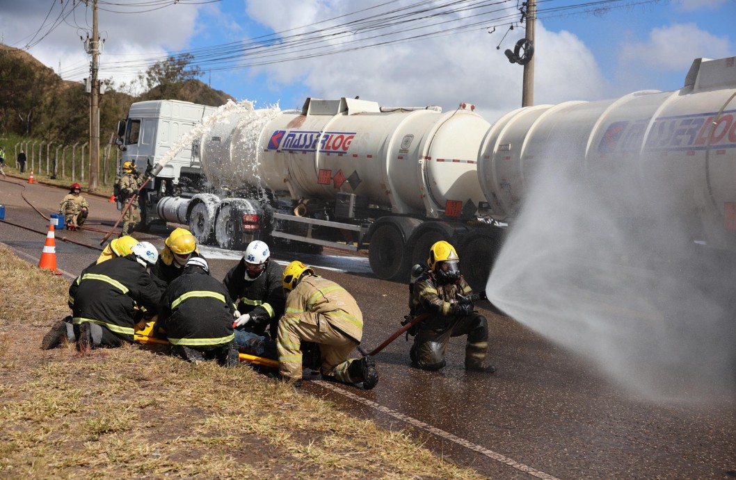 O treinamento reproduzirá dois acidentes simultâneos: um envolvendo uma carreta carregada com combustível e um carro, e outro envolvendo um ônibus, um caminhão e um carro.