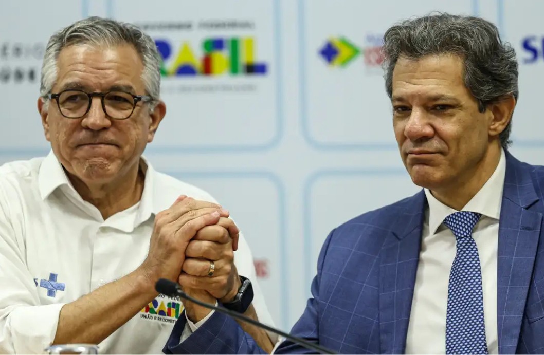 Os ministros da Saúde, Alexandre Padilha, e da Fazenda, Fernando Haddad, durante cerimônia de assinatura de acordo de cooperação técnica sobre jogos e apostas.