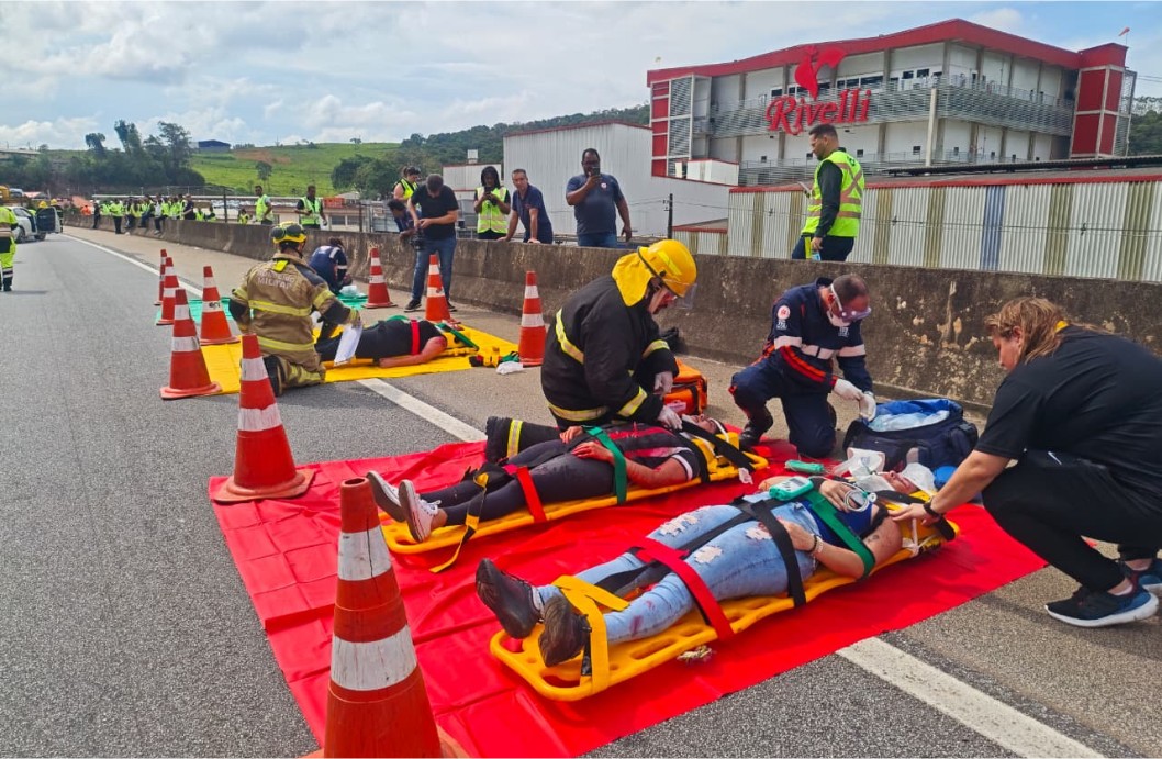 Na tarde desta quarta-feira, dia 3, a BR-040 foi palco de um simulado de acidente com múltiplas vítimas, envolvendo carreta, caminhão, van e veículos de passeio. A ação, realizada no km 702, em Barbacena (MG), reuniu dezenas de profissionais do Corpo de Bombeiros Militar de Minas Gerais (CBMMG), EPR Via Mineira, SAMU, ANTT e Polícia Rodoviária Federal (PRF). O treinamento integra o planejamento anual das instituições e tem como objetivo aprimorar o atendimento a grandes ocorrências, testar o Sistema de Comando em Operações (SCO) e fortalecer a integração entre órgãos que atuam em emergências nas rodovias federais.Para dar transparência e evitar desinformação, o simulado foi previamente comunicado à imprensa e aos hospitais da região.