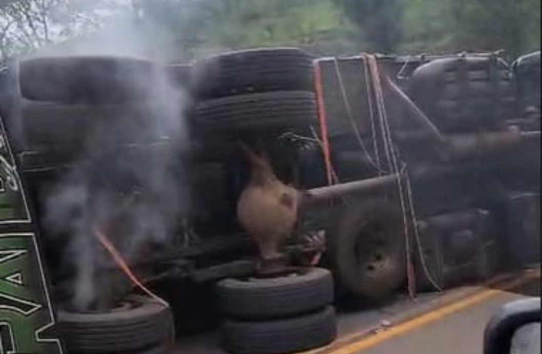 Tombamento de um caminhão ocorrido às 13h27 desta quarta-feira, dia 17 de dezembro