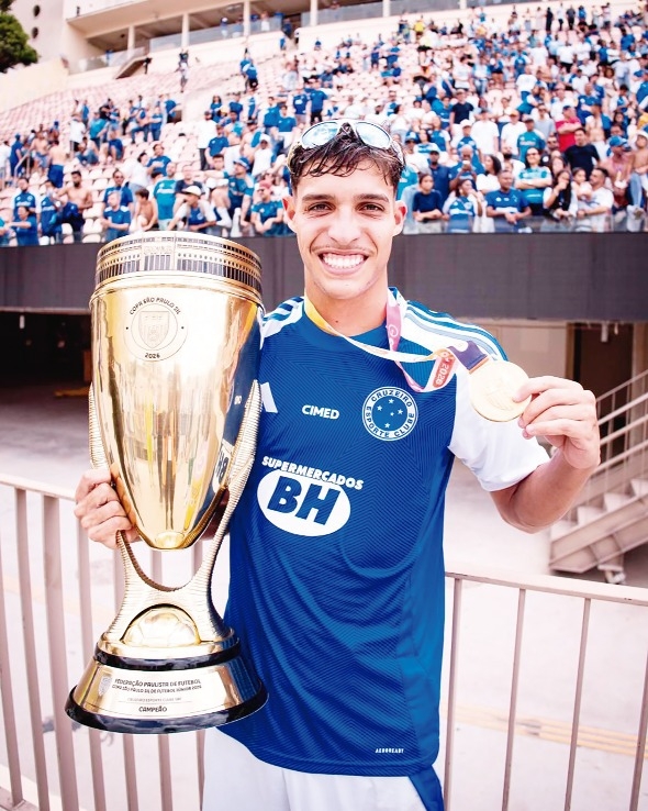 Com boas atuações, inclusive entrando no decorrer da decisão contra o São Paulo, vestindo a camisa 18, André Balbino comemorou sua contribuição para o título invicto do Cruzeiro na Copinha de 2026. Aos 19 anos, completados no dia 11 de maio, ele celebrou a conquista ao lado dos demais “Crias da Toca”, comandados pelo técnico Mairon Cesar. (Amauri Machado).
