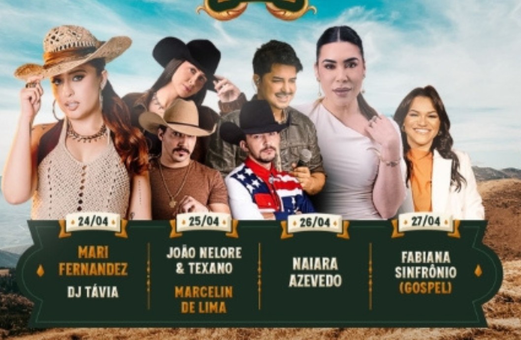 Tags: Carandaí Expo Rodeio 2026; aniversário de Carandaí; shows Carandaí abril; rodeio Minas Gerais; eventos em Carandaí MG; Naiara Azevedo show; festa tradicional MG; programação Expo Rodeio; Parque de Exposições Carandaí; eventos abril 2026 MG