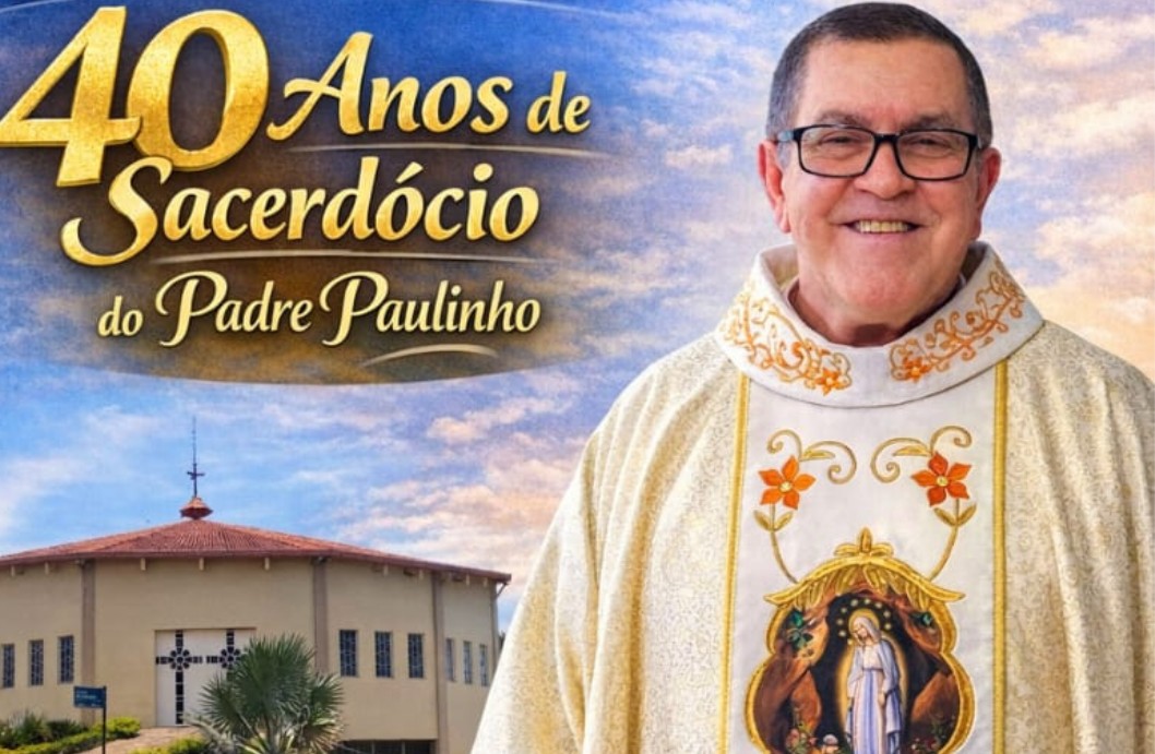 A Paróquia Nossa Senhora de Lourdes convida fiéis, familiares e amigos para a celebração em ação de graças pelos 40 anos de ordenação sacerdotal do pároco, o Paulo Edson Moreira. A missa especial será realizada neste domingo, 19 de abril de 2026, às 11h. O evento religioso marca quatro décadas de dedicação ao sacerdócio e à comunidade, reunindo paroquianos, irmãos padres e convidados em um momento de fé e gratidão. A celebração será realizada na igreja localizada na rua Cônego João Pio, 740, no bairro de Lourdes, em Conselheiro Lafaiete.