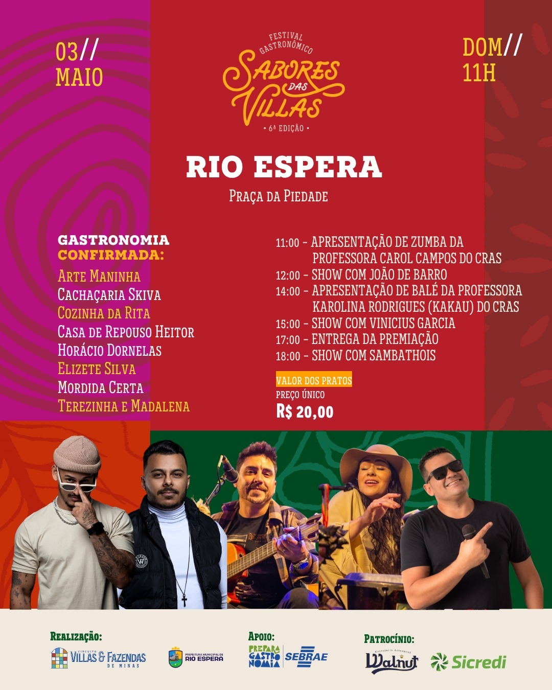 O maior festival gastronômico de Minas Gerais promete um fim de semana inesquecível na região das Villas e Fazendas. A 6ª edição do Festival Gastronômico Sabores das Villas chega com força total neste sábado, dia 2, em Senhora de Oliveira e domingo, dia 3, em Rio Espera, reunindo sabores da cozinha mineira, atrações culturais e grandes shows.